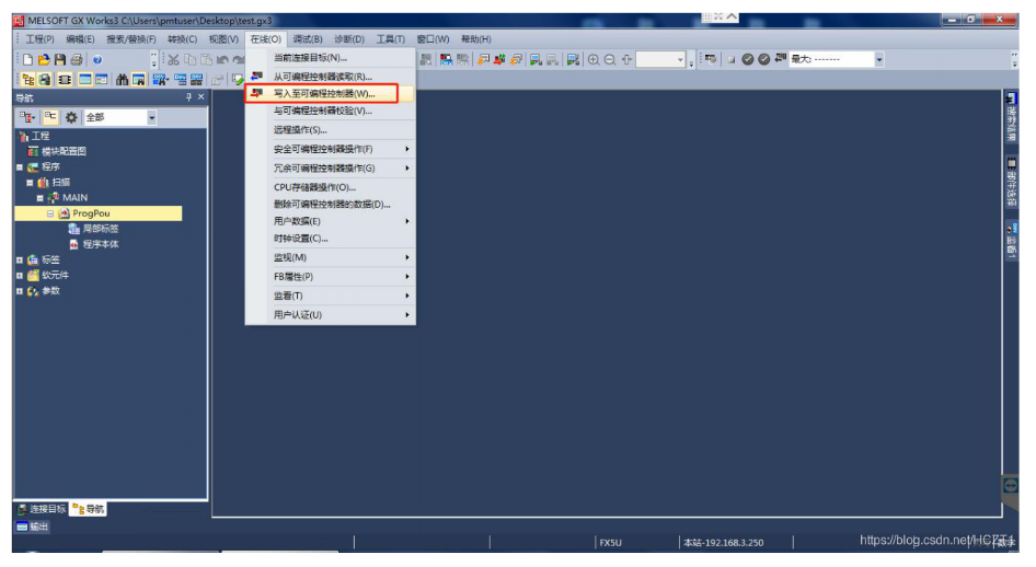 點(diǎn)擊【在線】下的【寫(xiě)入至可編程控制器】。