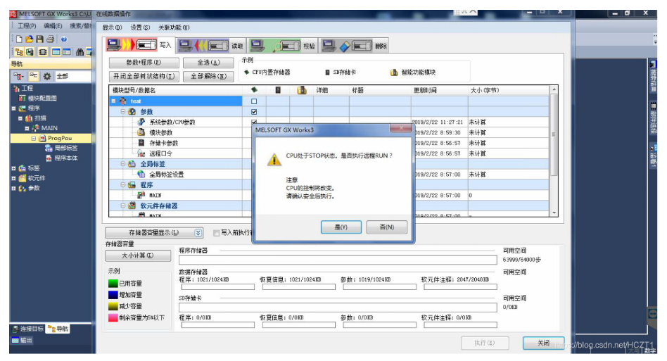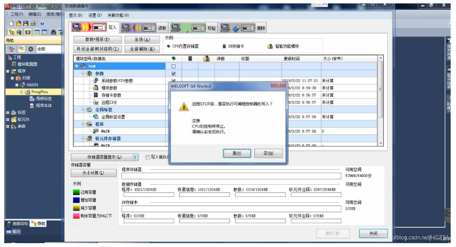 提示是否執(zhí)行可編程控制器的寫(xiě)入,點(diǎn)擊【是】。