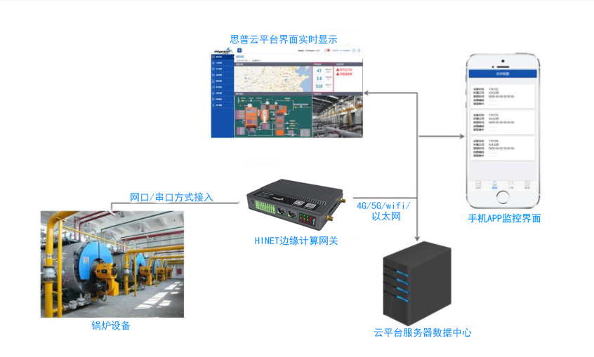 工業(yè)鍋爐一般應(yīng)用于發(fā)電或者供氣等場合,廣泛使用于能源、化工、建材、供暖等行業(yè)。目前工業(yè)鍋爐的專業(yè)性越來越高,對設(shè)備安全的要求也越來越高。需要及時了解設(shè)備的現(xiàn)場運行狀態(tài),實時記錄設(shè)備運行數(shù)據(jù),第一時間能掌握設(shè)備故障,并且可以及時進行售后服務(wù)。另一方面,出于節(jié)能以及精細化管理的需求,需要整理和搜集大量的設(shè)備運行數(shù)據(jù),為設(shè)備的能源管理和節(jié)能改造提供數(shù)據(jù)支持。